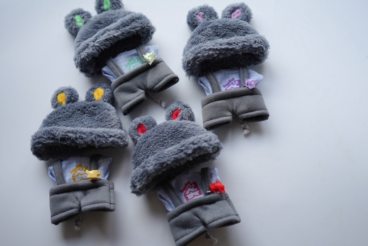 (ねずみばぶ帽子/チェックシャツ/cheeseサロペット)